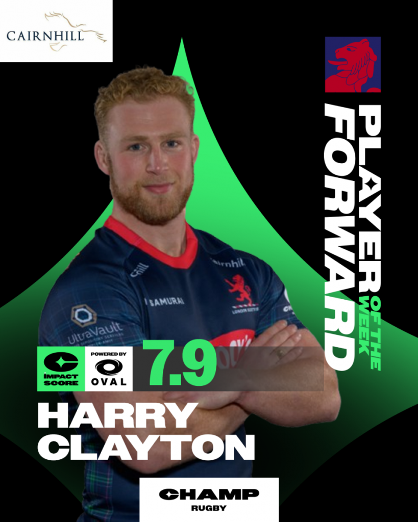 It was Harry Clayton’s day at the RAG, racking up a 7.9 impact score courtesy of Oval Insights. In his 70 minute display he notched up 10 carries from 22m as well as 6 tackles, a turnover won and 100% record at the line out.